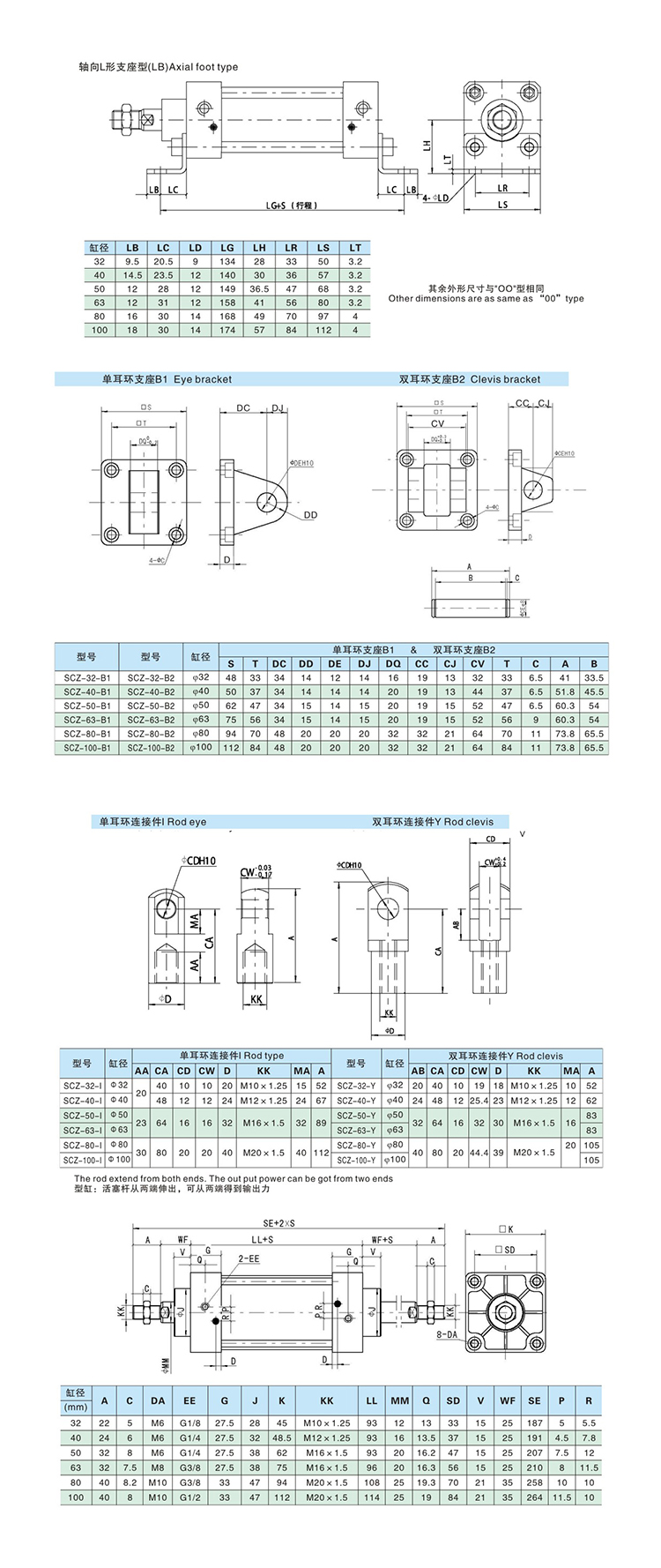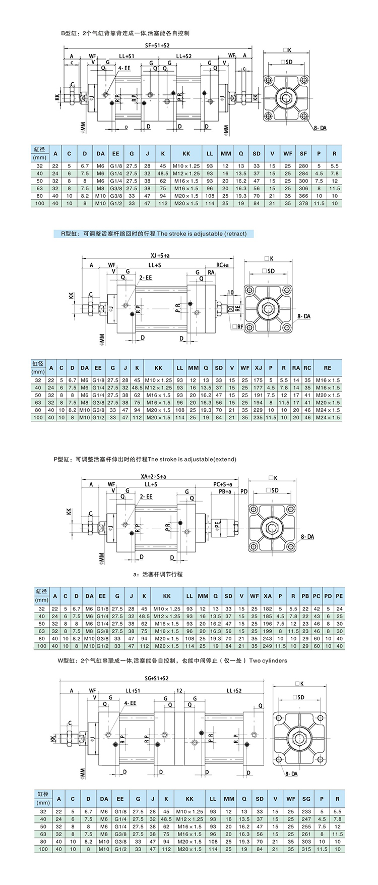 缸徑:Ф32 Ф40 Ф50 Ф63 Ф80 Ф100