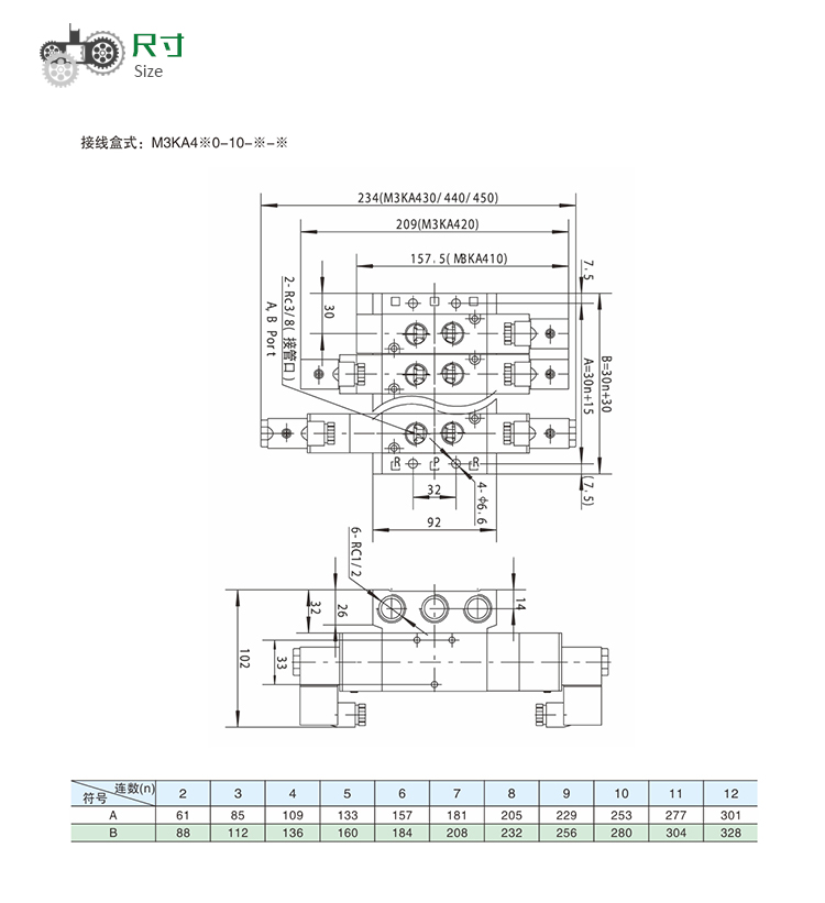 M3KA4系列 先導式5通匯流板型通電磁閥